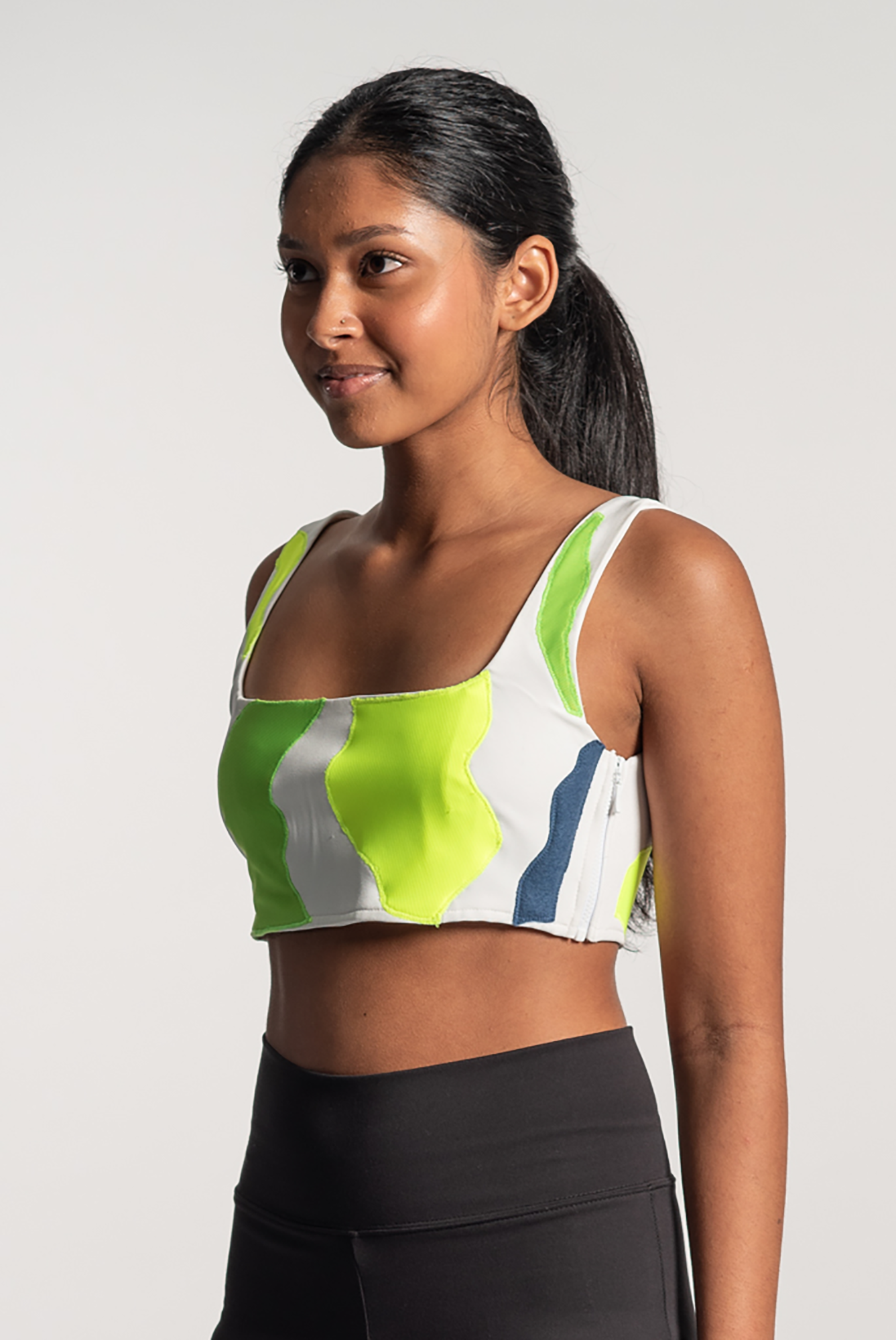 Neon Green Patchwork Crop Top