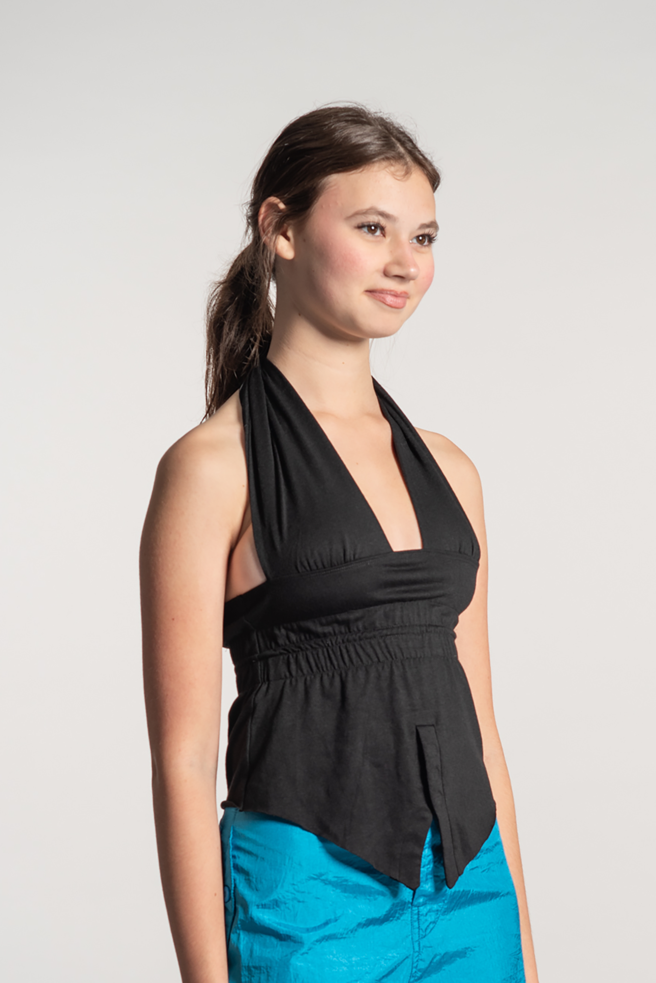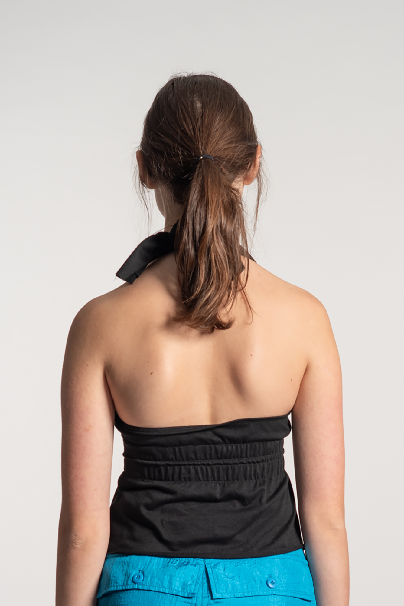 Halter Neck Tie Black Cotton Vest Top